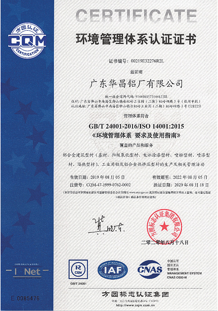 成立華昌鋁業(yè)(澳大利亞)有限公司、先后通過了質量管理體系認證、環(huán)境管理體系認證、職業(yè)健康安全管理體系認證、挪威DNV質量管理體系認證,獲“采用國際標準產品標志證書”、“聯(lián)合國注冊供應商”資格認定。
