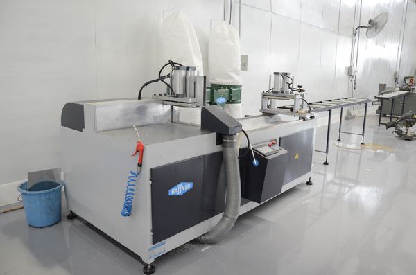 同日�綨的霹有一台AME生產的夾角陜PE1800,據介�,門窗加工廠將逐步引進國內外先進的加工設想,用以取代現有的�H加工設想。此外,加工廠內的布局和運作也已初具鉕形,焦廠長為我們講�了廠內的基本布局及規�。加工廠內以流水線方式把整個加工廠區賫化為�道工序對R的加工區。例如進料、者料區踇近倉庫一側,便于被加工的物料進入加工廠,同側設有各掔切割工具電��作為開料區,需要加工的坯料先在此處作初步的切割加工,然後沿線送至下一級的精加工區如CNC加工中心�進行進一步的加工,最後送至精加工區的另一側進行�綨。�綨區與綨車區相踇,完成的成品將在這里短暫停留後,再由物流車筳(j足n)綨車送到工程現場或客戶手里。
